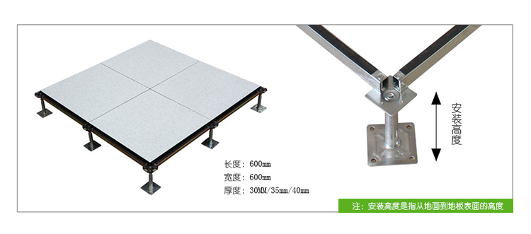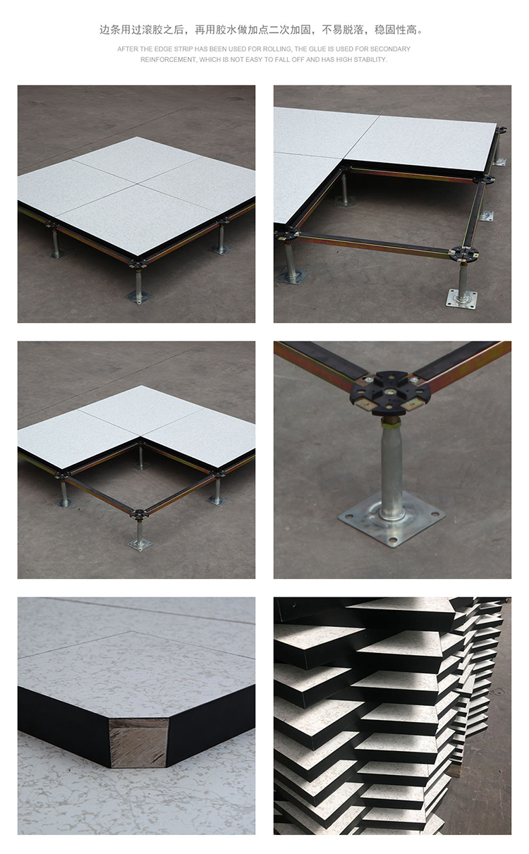 硫酸钙防静电地板采用硫酸钙为基材,地板上面用防火板HPL/PVC/陶瓷地板等装饰面层,下面用镀锌板或压花铝合金粘合,四周用PVC导静电封边,地板不易受潮,不易变形,耐燃烧时间更长,使用寿命长,安装好的地板下面形成通路,方便下面地板走线,线路检修。地板无需除油磷化喷塑,平整度好、边不反翘,环保、强度大,密封性及稳定性好。