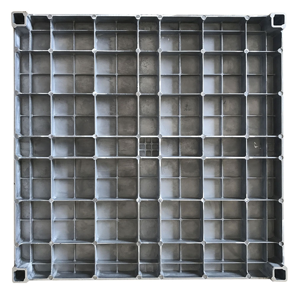 铝合金地板采用高压压铸工艺,铝锭熔化后,经高压压铸机一次性真空压铸成形,融合了铝合金耐腐蚀的特性,地板表面可根据需要进行环氧树脂喷粉或镍铬电镀,从而表面达到柔光、防腐、耐磨效果。