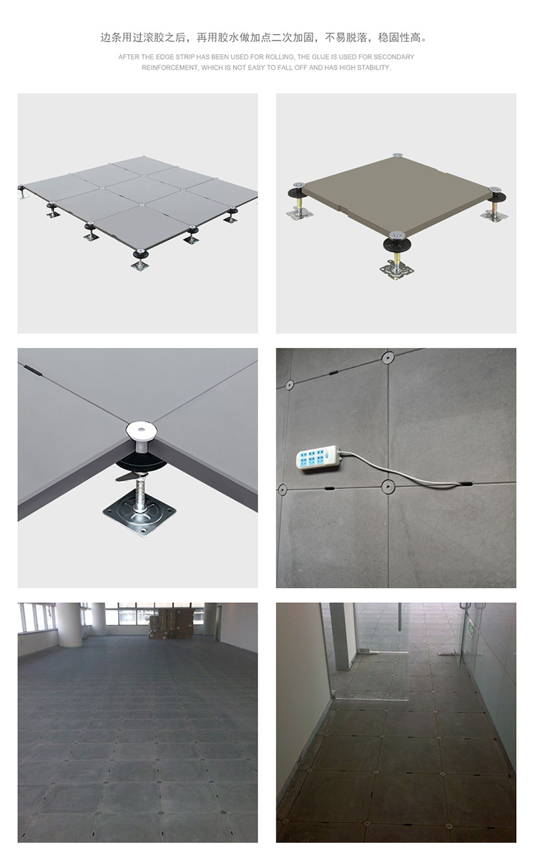 5.2 无机质网络地板安装后平整度高,无发软的感觉,其表面铺设材料可用强化地板、PVC、方块地毯等,而普通钢质网络地板表面只能铺设方块地毯。