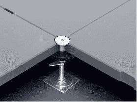 地板四角镀锌底座支承,不带横梁系统。每块地板四角有90°圆弧,四块板组合而成后形成一个圆,有一个铝制螺母压角固定。