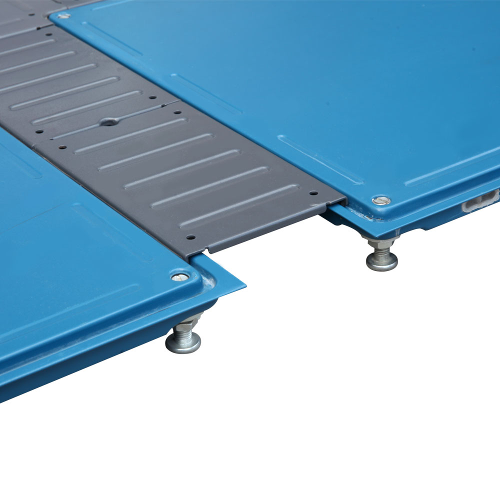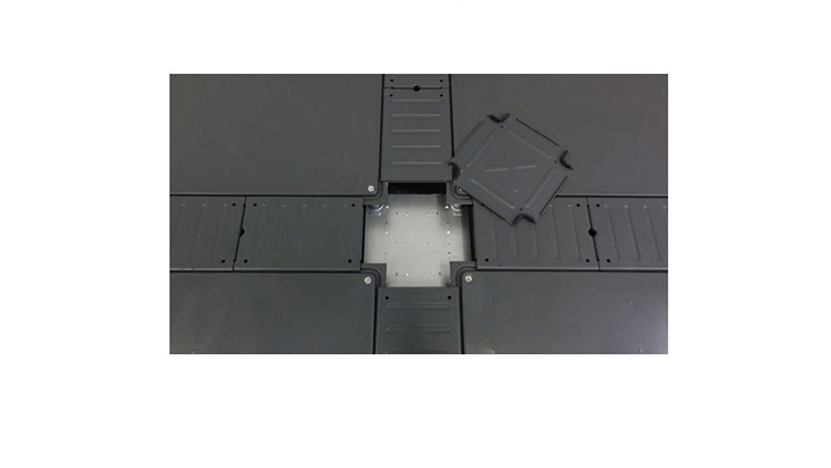 OA(线槽)网络地板其结构为四角独立支撑结构,扣槽式线槽盖板使地板安装完之后连接稳定,不松动,地板采用钢板经拉伸成型、点焊、喷塑、内腔填充 发泡水泥填料,支座为镀锌,高度可调并能自锁。主要组件有:地板、边盖板、角盖板、角底板、支架。